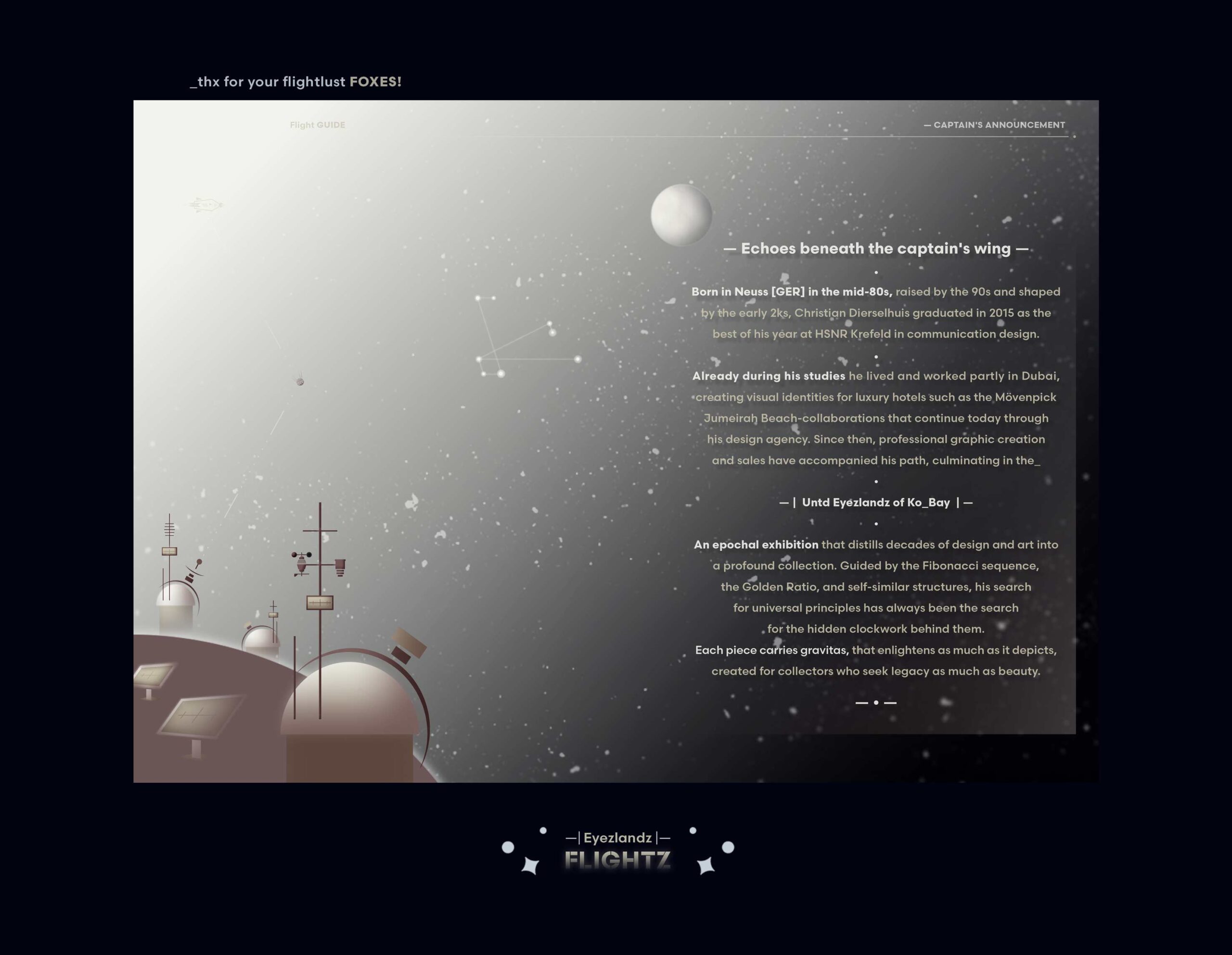 Danke, dass Sie sich die Zeit genommen haben, diesen Werken zu begegnen und ihre Flügel für Ihre eigene Reise zu nutzen. Diese Arbeiten sind keine Dekoration. Sie entstehen aus einer Suche nach konkreten Wahrheiten – sowohl physiologischen als auch psychologischen – und tragen die Spuren und Erkenntnisse dieser Reise in Form sowie in sichtbare Zeit.